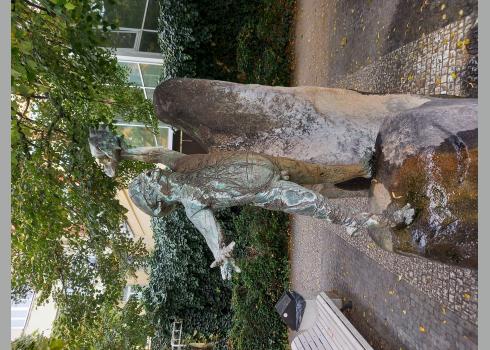 Die Leute sind freundlich, das Essen ist schmackhaft, das Bier so gut wie unseres. Allein die Kunst im öffentlichen Raum arbeitet gegen diese Harmonie, da krabbeln groteske Riesenbabys, allerlei Horrorgestalten, Kinderfiguren mit gerillten Gesichtern läuft Brunnenwasser aus den Füßen. Und vielleicht geht der Golem ja wirklich um, wenn der Nebel dicht genug ist. Dann besucht er diese Vertrauten, die auf den Plätzen auf ihren Sockeln Wache halten, damit die Touristen den Einheimischen noch etwas von der Stadt übriglassen. Zu welcher Gruppe gehöre ich? Und was steht auf dem Zettel in seinem Mund, der ihn zum Leben erweckt hat? Dort steht: Philip, brüh dir auf dem knisternden Gasherd in dem kleinen Kännchen einen Kaffee auf und dann zurück an Manuskript!
